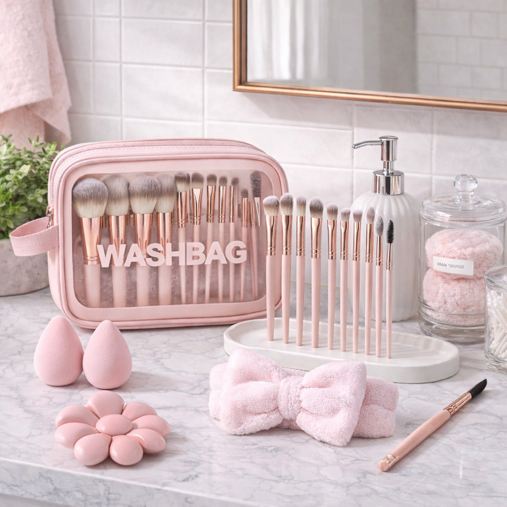 Unesite stil i organizaciju u svoju beauty rutinu uz komplet koji kombinuje eleganciju, praktičnost i sve što vam je potrebno za savršeno šminkanje — bilo kod kuće ili na putovanju.