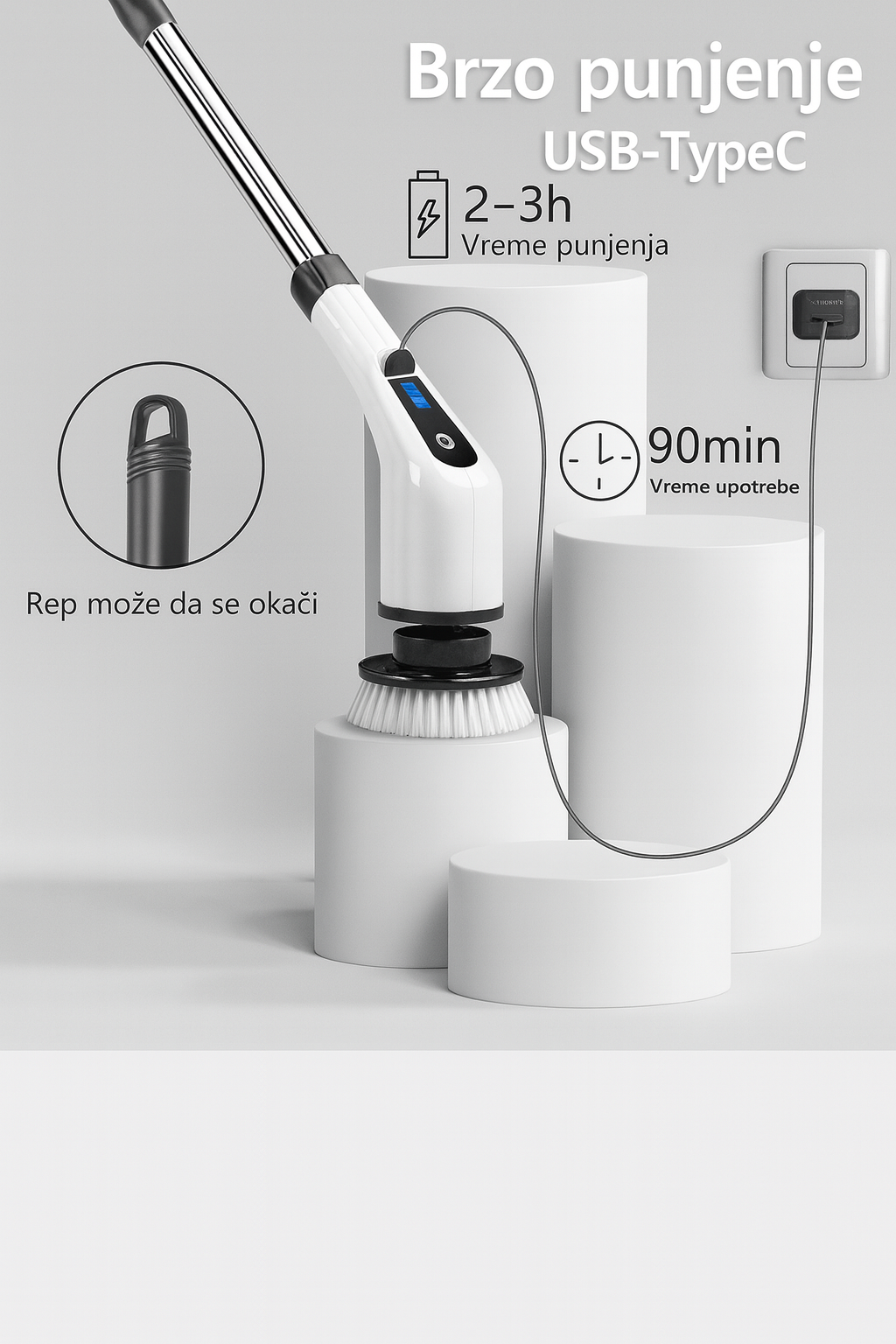💎 Super sposobnost čišćenja: Ova električna četka za čišćenje koristi motor visoke snage od 25W kako bi lako uklonila sve mrlje. Čak i sa snažnim pritiskom, naša četka i dalje radi savršeno, zato je pogodna za dubinsko čišćenje.