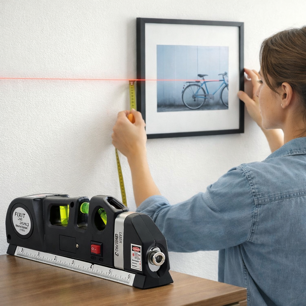 Laserska libela 3 u 1 – Laser Level Pro je idealno rešenje za kačenje slika, montažu polica i ormarića, postavljanje pločica u kupatilu ili kuhinji i sve poslove gde je preciznost ključna.