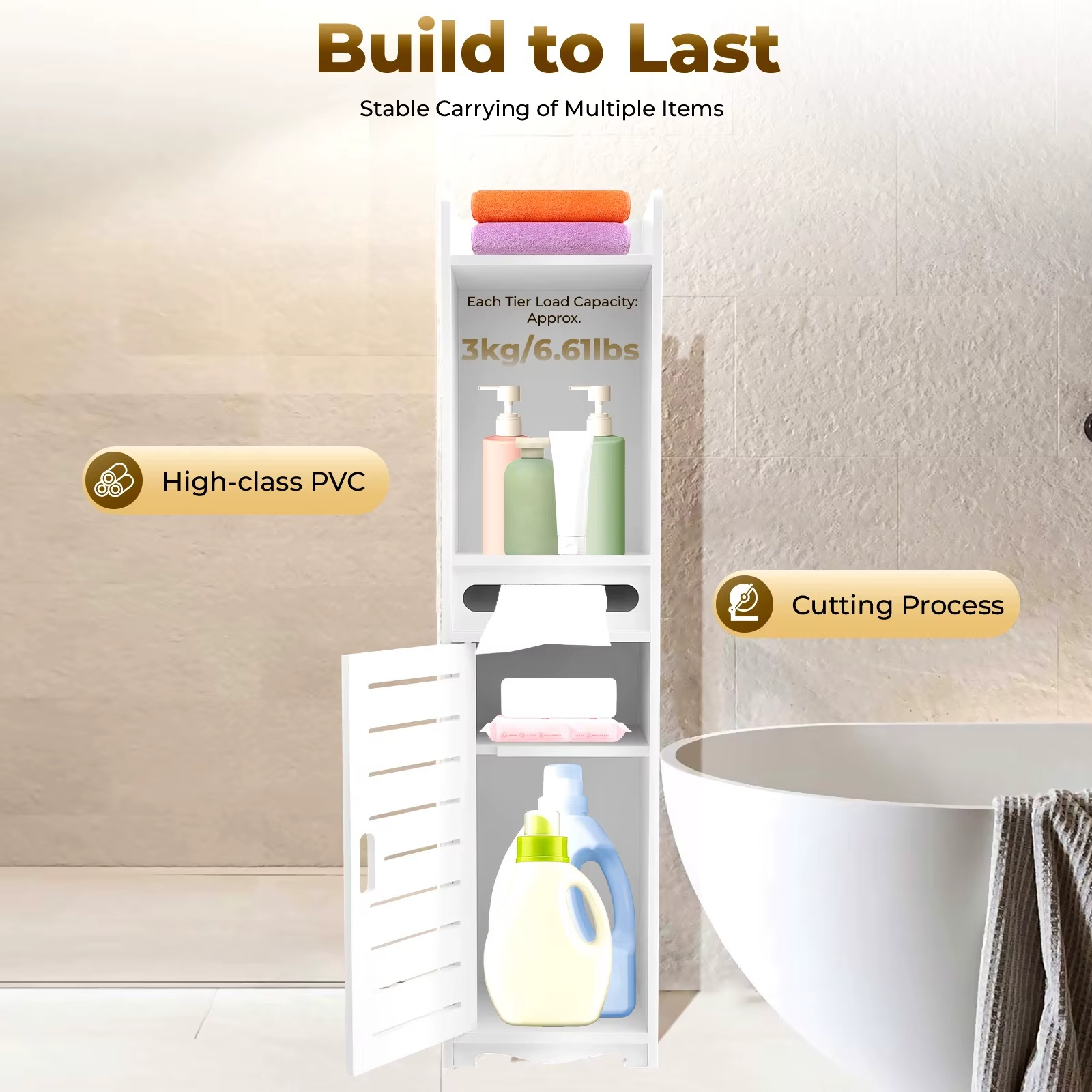 Naša elegantna, vodootporna polica idealna je za čuvanje svih kupatilskih potrepština — od kozmetike i losiona, do toalet papira i peškira.