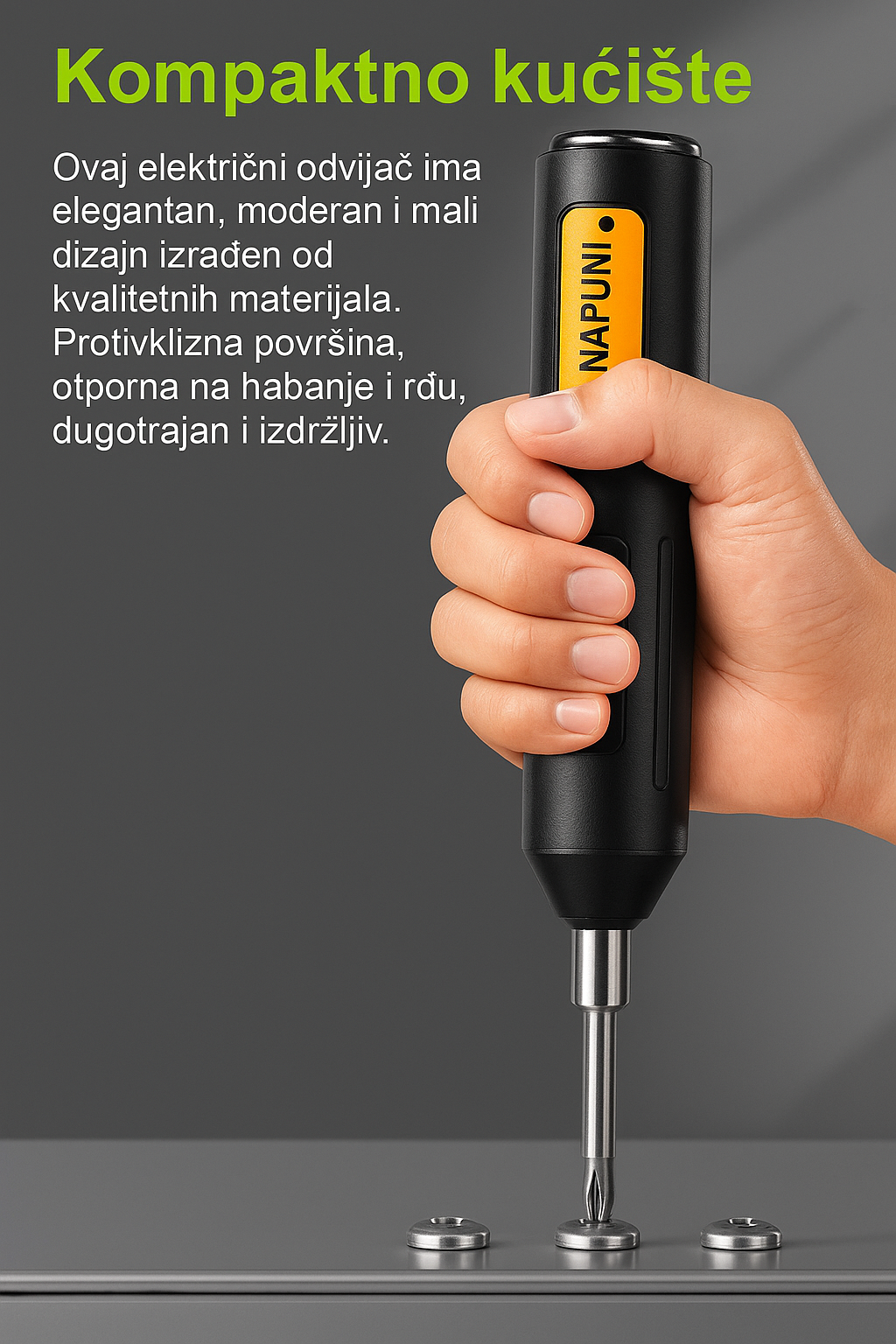 Lagan, prenosiv i udoban u ruci. Kontrola jednim dugmetom – brzo i lako zavrtanje i odvrtanje šrafova bez komplikacija.