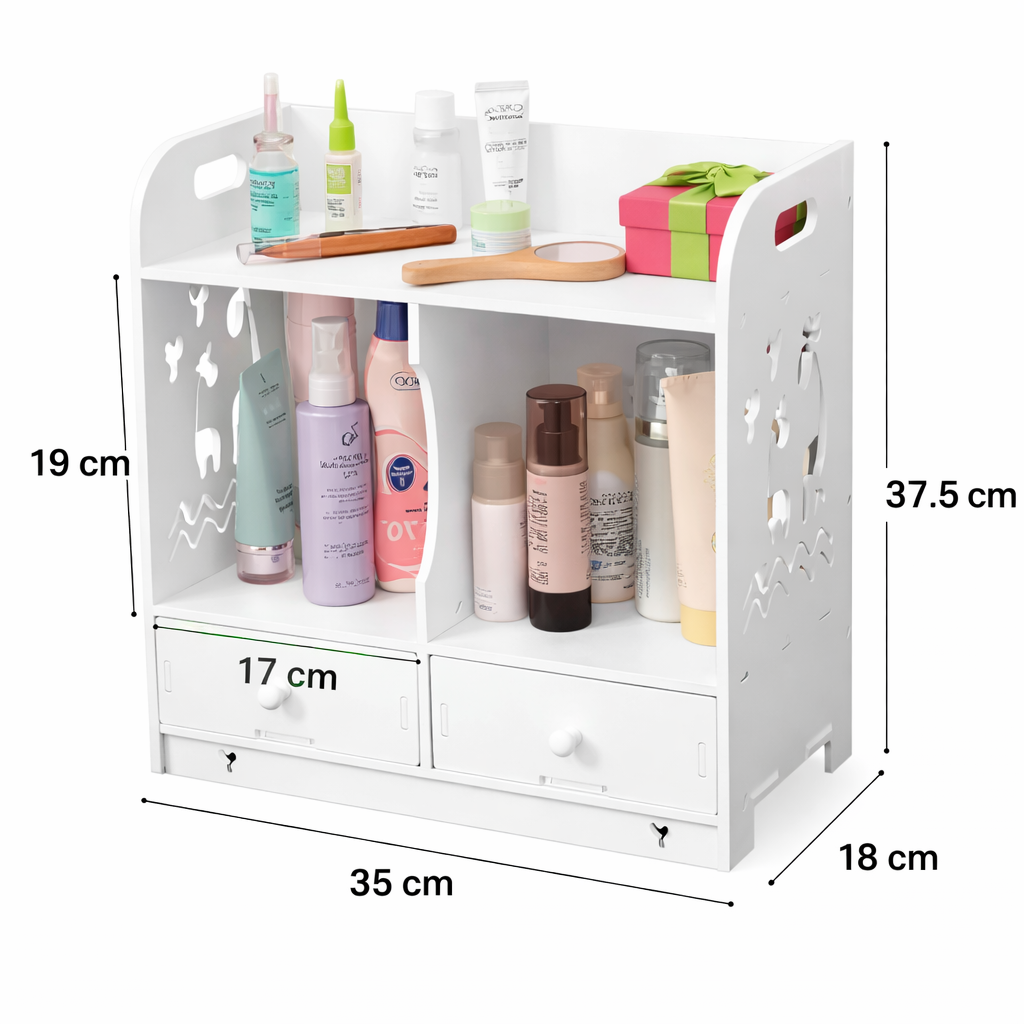 Dodatni prostor za odlaganje u kupatilu nikada nije višak. Ovaj praktičan ormarić sa dve fioke omogućava Vam da organizujete kozmetiku, šminku i svakodnevne sitnice na jednostavan i pregledan način.